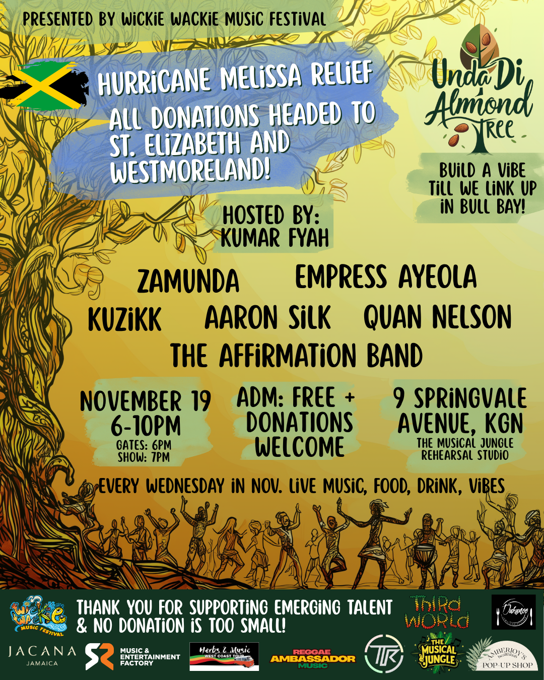 The first day of WWMF26 will be dedicated to showcasing emerging talent throughout Jamaica. The Unda Di Almond Tree Stage will feature the best performers from our limited series on Thursday, February 12.